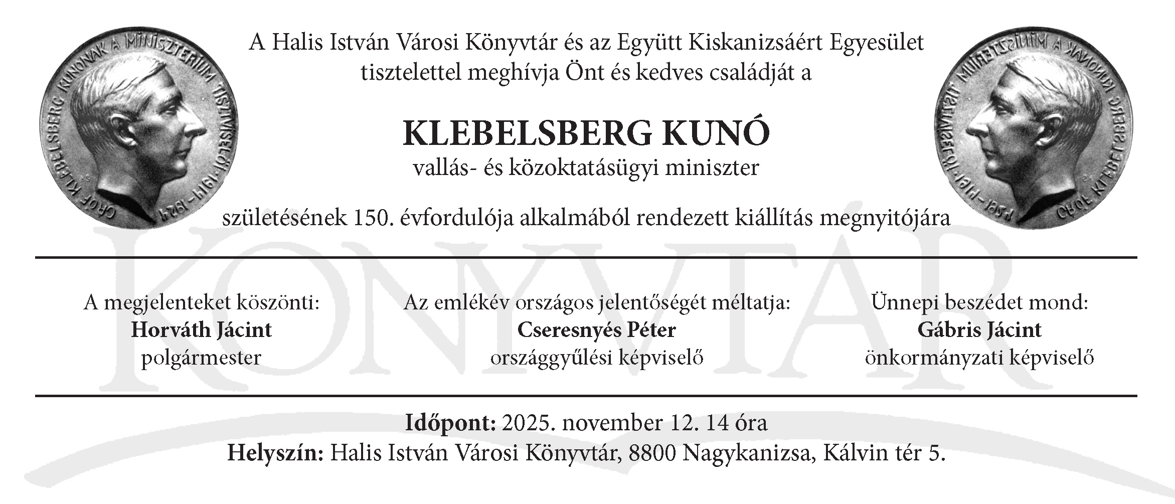 Kiállítás Klebelsberg Kunó születésének 150. évfordulója alkalmából (november 12.)