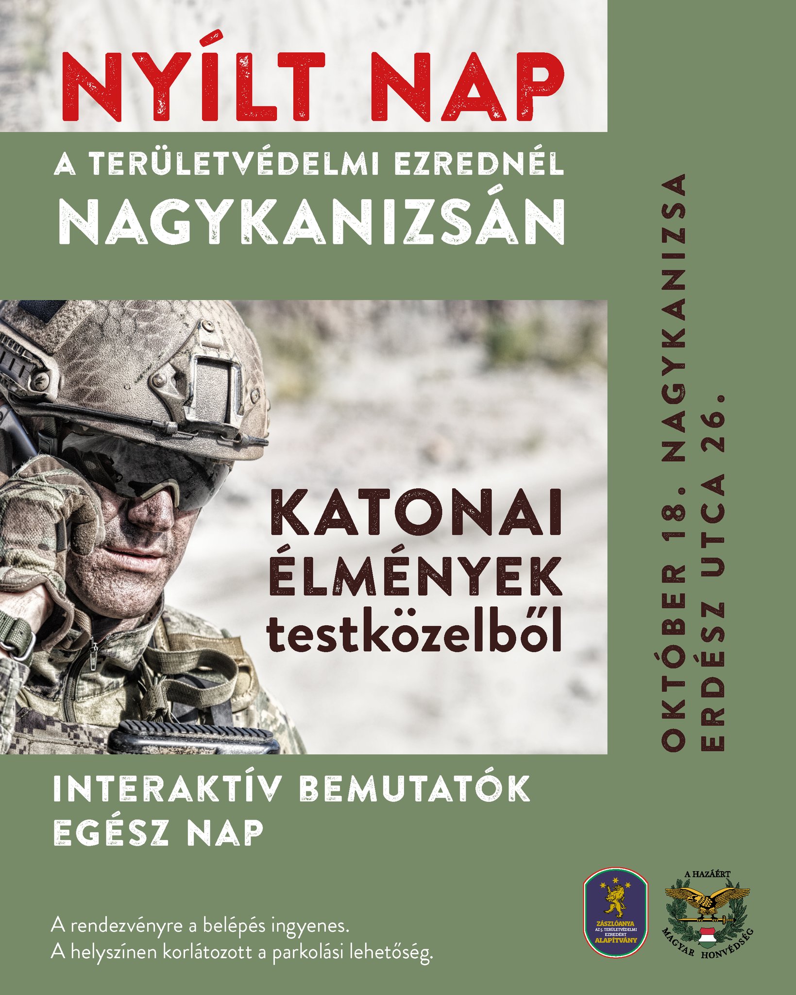 A Zászlóanya 5. Területvédelmi Ezredért Alapítvány és a Magyar Honvédség Bauer Gyula 5. Területvédelmi Ezred közösen rendezi meg a Területvédelmi Ezred nyílt napját 2025. október 18-án, a nagykanizsai Erdész utcai katonai objektumban.